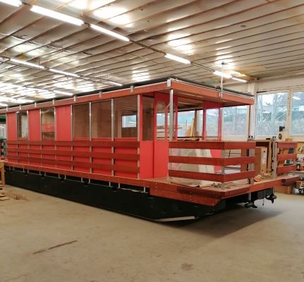 Führerscheinfrei zu fahren. Nach einer intensiven, kostenpflichtigen (50€),Einweisung in Theorie und Praxis steht ihnen das Elektro-Floß "Solar-Lachs" zur Verfügung.